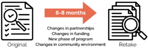 After you’ve taken an assessment for a particular PSE area, we recommend re-taking the same assessment every 6-8 months or as needed after significant progress/changes in your intervention or community context (i.e. roadblocks/barriers, new partnerships, changes in funding, etc.)